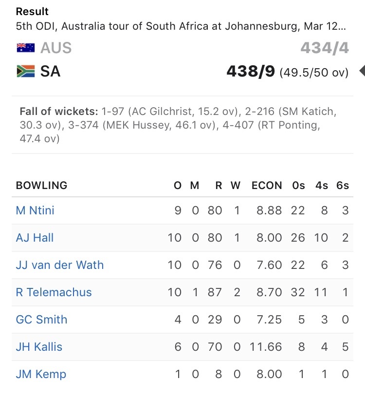 Watch this once in a lifetime epic match in highlights. The hosts successfully chased down australia's 434/4 on that occasion. And sa were hosting none other than australia. australia in south africa odi series venue: Ricky ponting on the rampage.